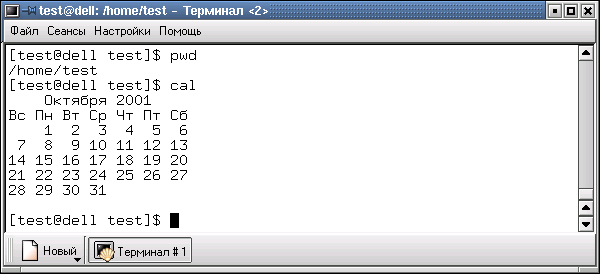 После открытия командного окна в нем появляется приглашение shell (обычно это символ $). После того, как команда набрана и просмотрена на предмет ошибок, следует нажать клавишу Enter для передачи команды интерпретатору shell на выполнение. Результаты выполнения команды появляются в окне терминала, после чего опять появляется приглашение shell.