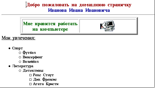Создайте приведенный ниже html-документ, заменив фамилию, имя и отчество на