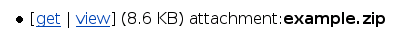 To refer to attachments on a page, use attachment:filename.ext; a link of this kind follows all the rules for normal links, i.e. pictures are automatically inlined. Do not use the URL of the [get] link you can see on the attachments upload page, since these links are subject to change and can break easily on reconfiguration of the wiki. To refer to files attached to other pages, use attachment:WikiName/filename.ext.